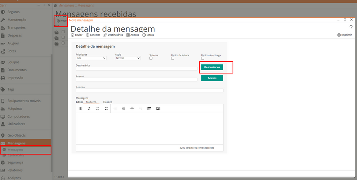 Ir ao menu de mensagens Clicar em Mensagens Clicar em novo